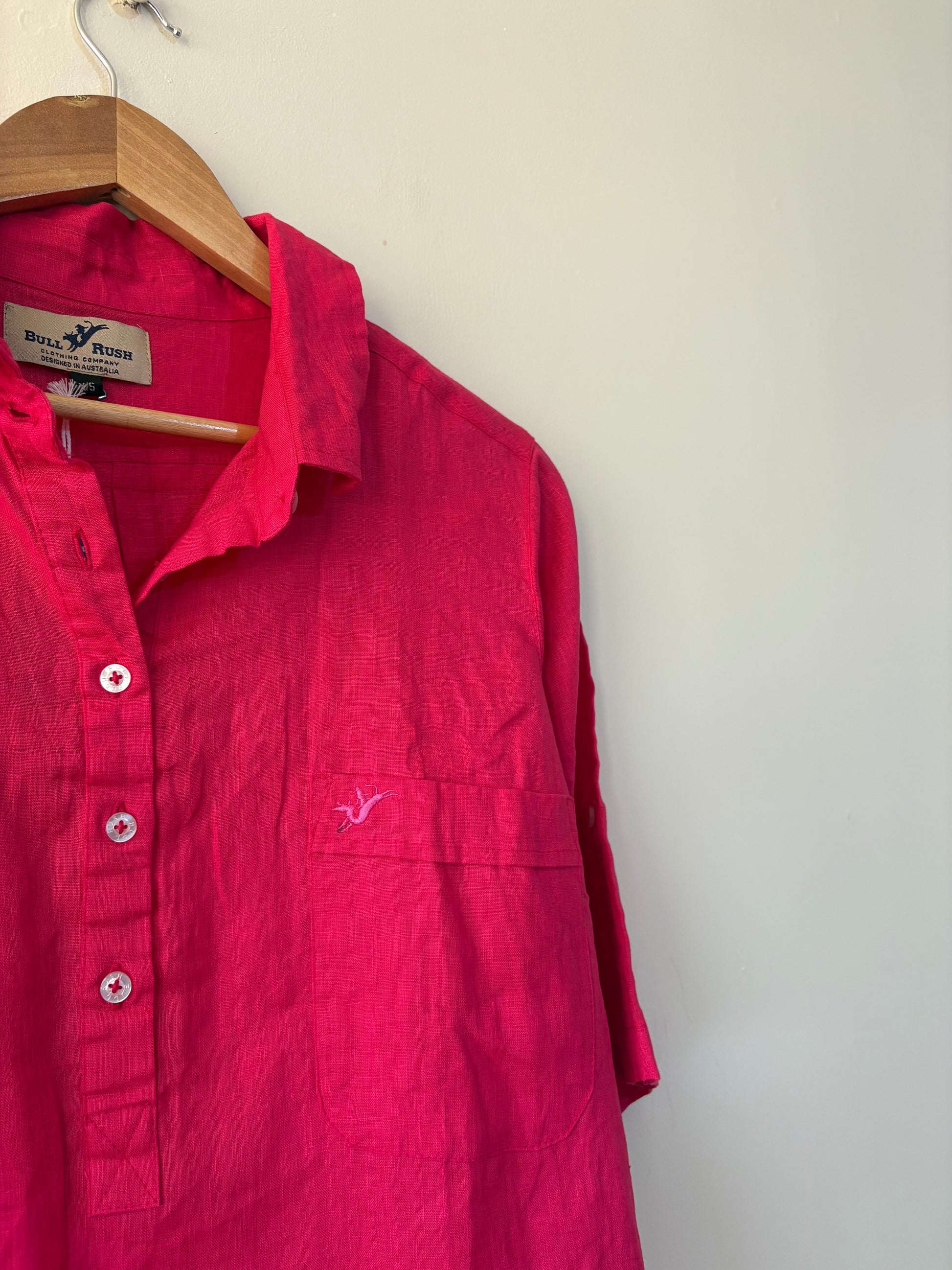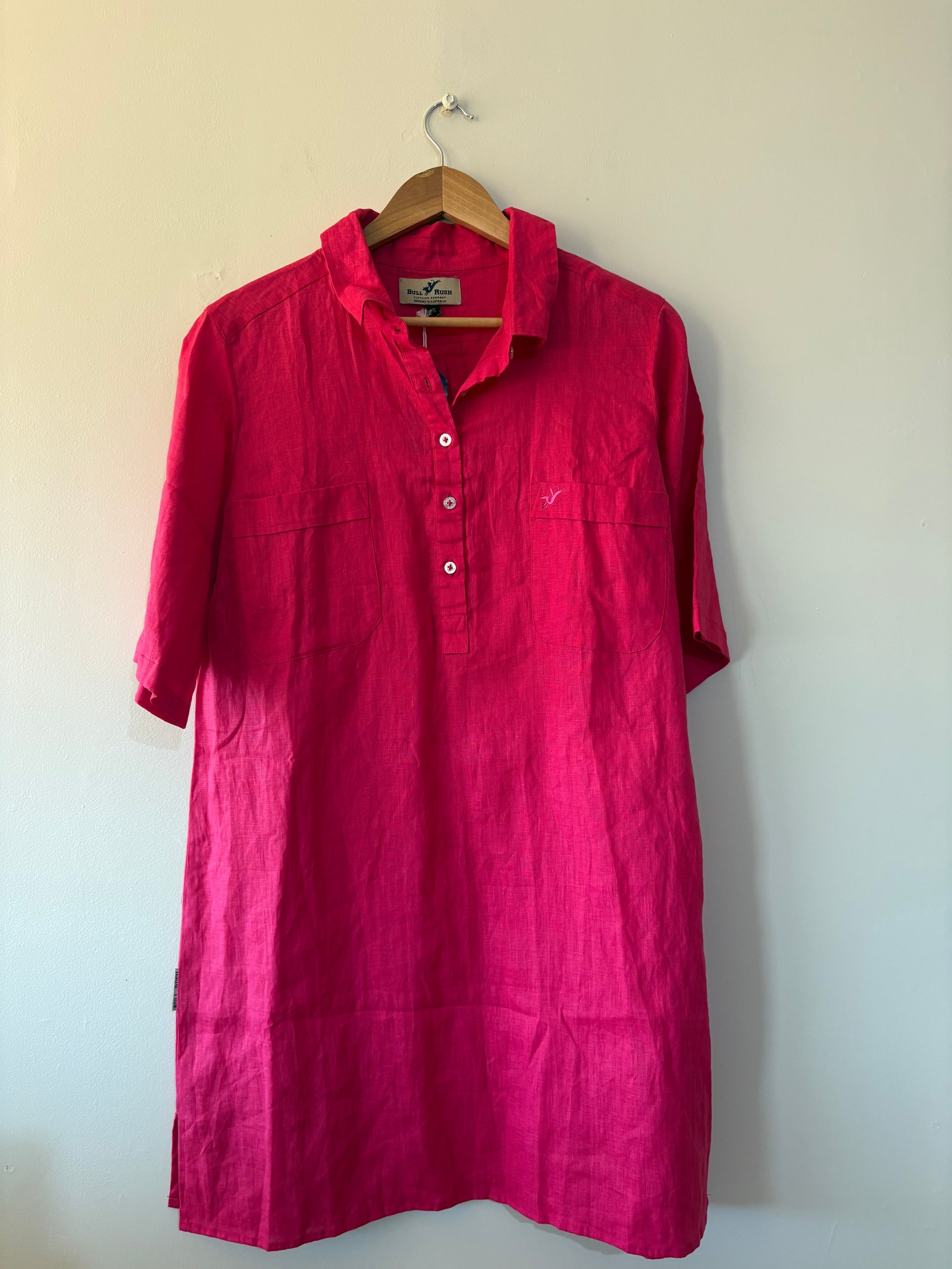 Brand new with tags, bull rush ‘Jodie’ hot pink linen dress. Half sleeve, half button.