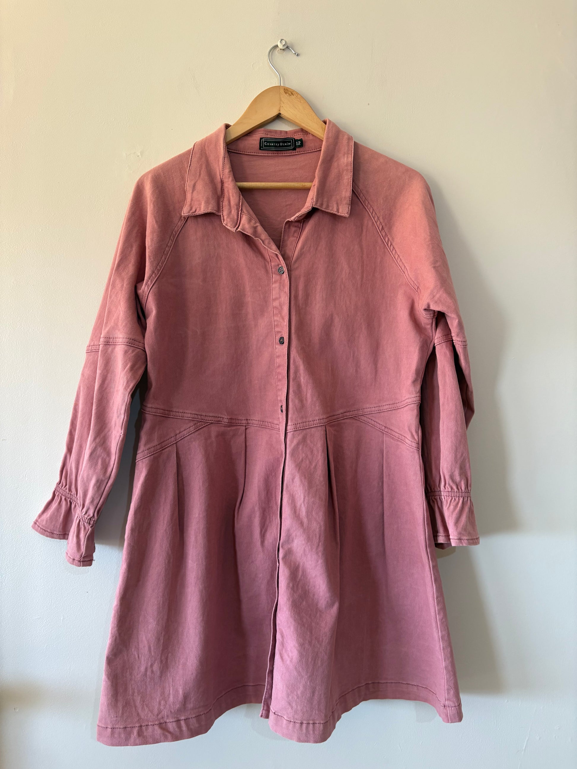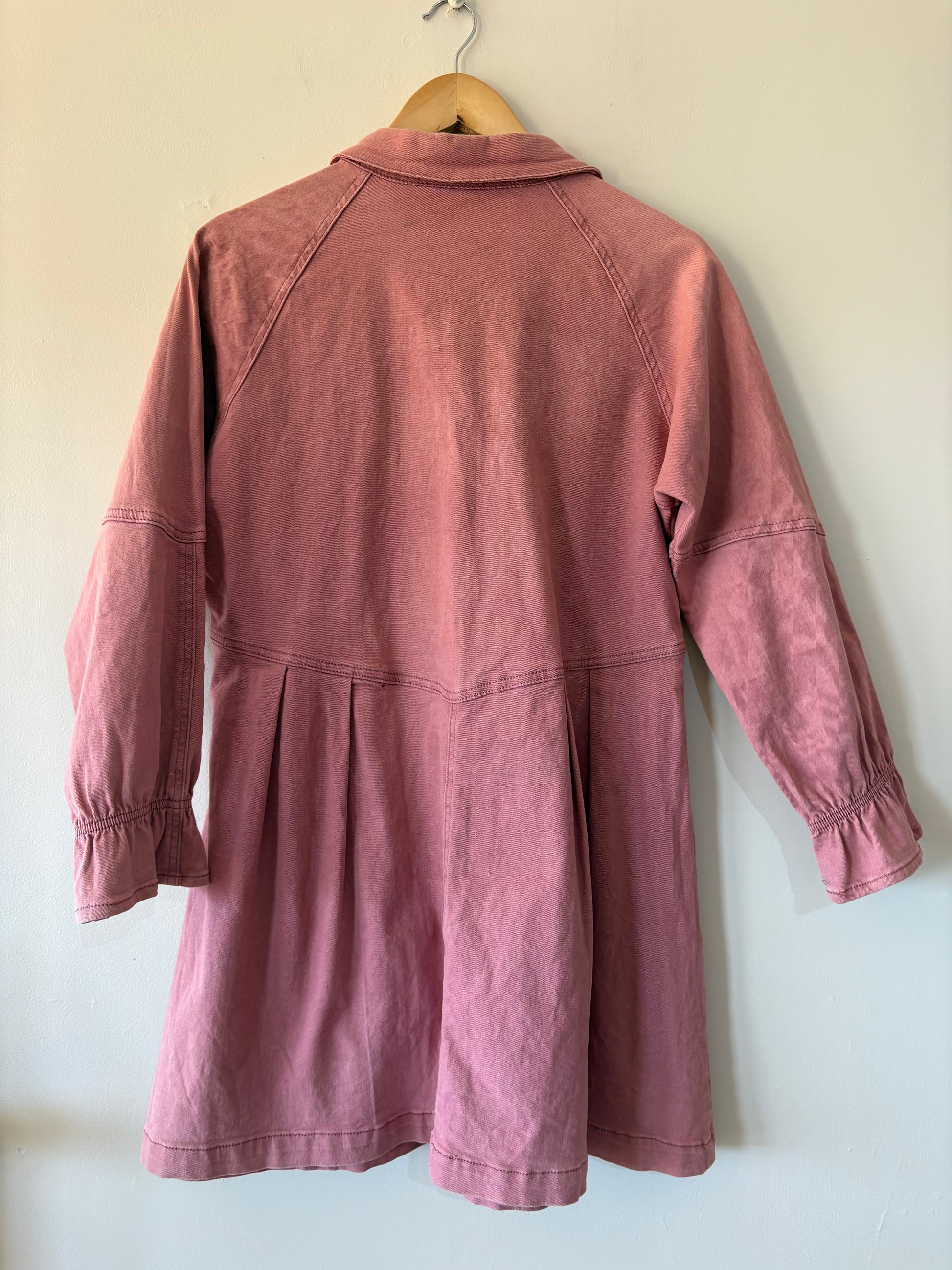 Dusty denim pink dress, full button up, long sleeve in good condition.