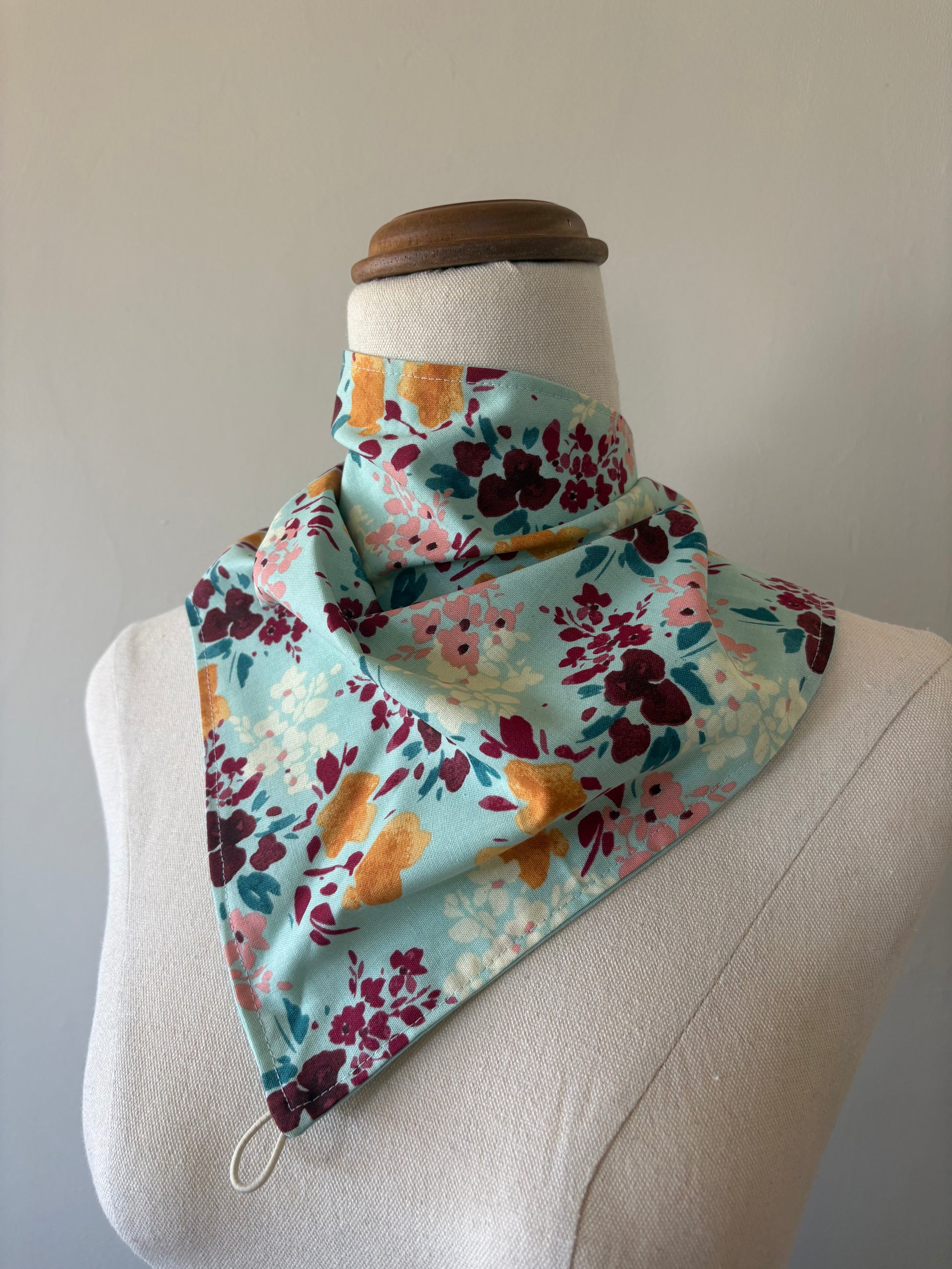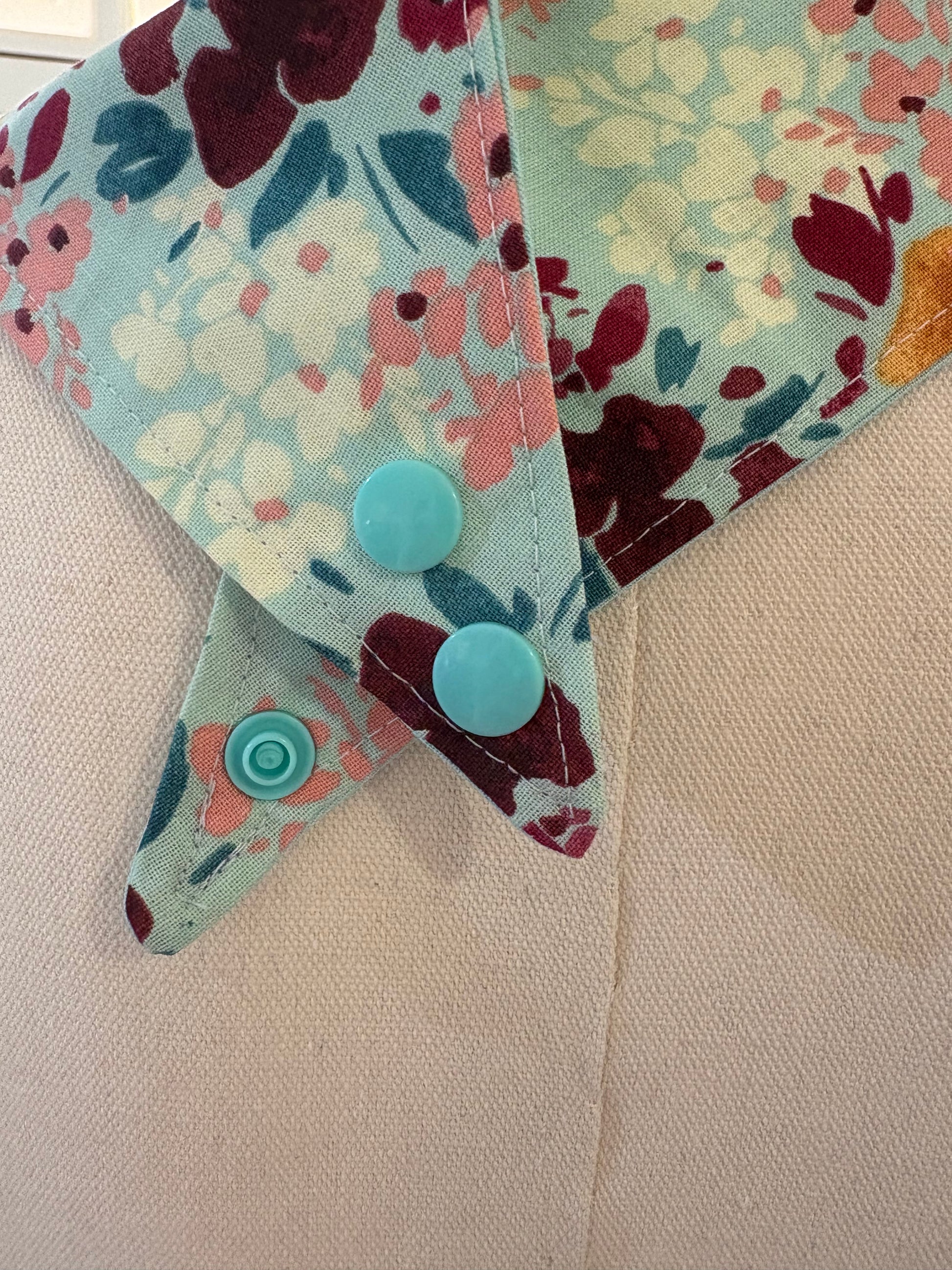 Reversible Button-Up Neck Scarf with Button loop, one size fits most. Can also tie up.